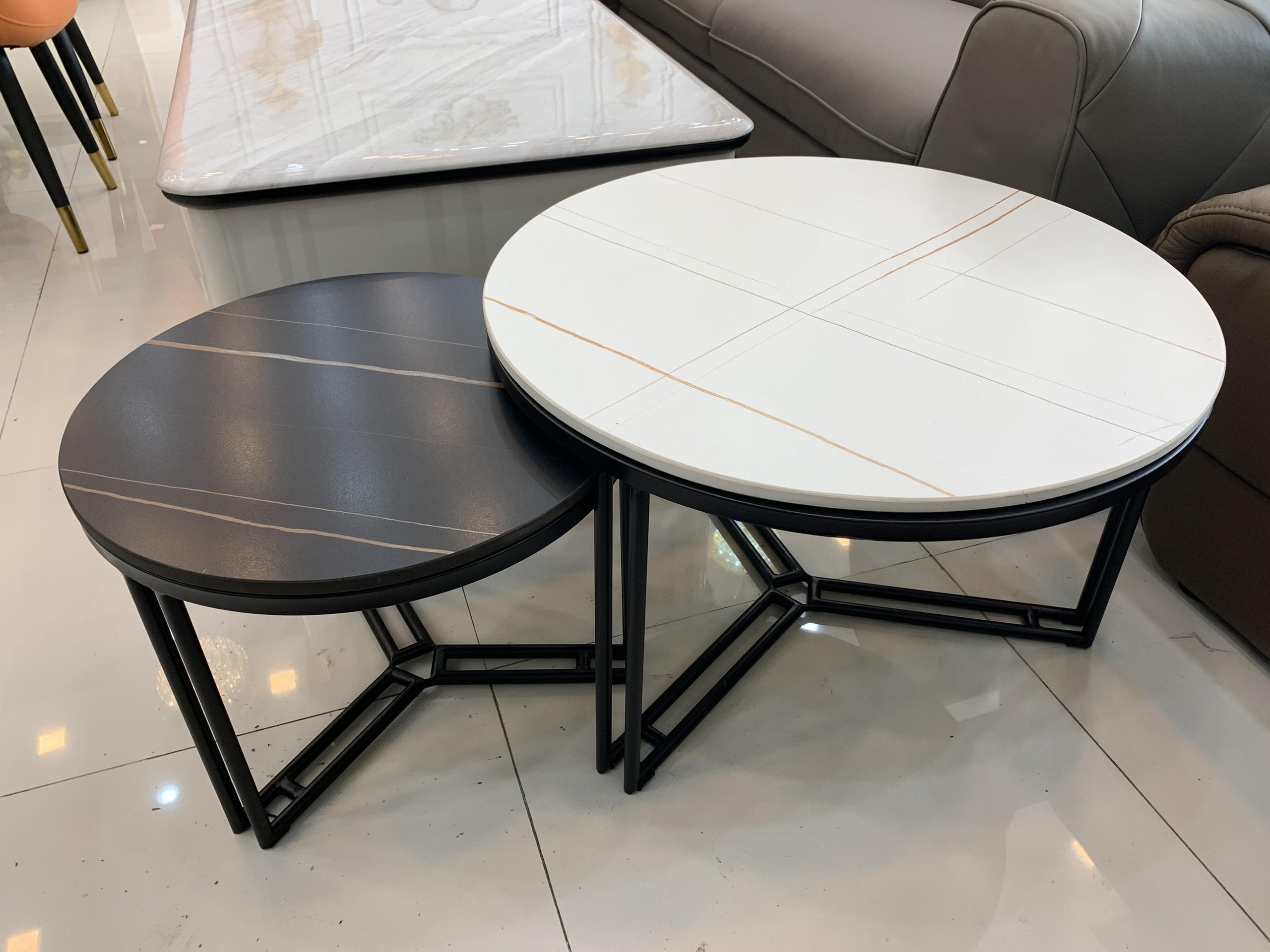 Xu hướng lựa chọn bàn trà phòng khách hiện nay đó chính là sử dụng bàn trà đôi kết hợp. Bạn có thể lựa chọn 2 mẫu bàn tròn, 2 mẫu bàn vuông hoặc kết hợp 2 mẫu bàn trà có kiểu dáng khác nhau để bố trí trong phòng khách.